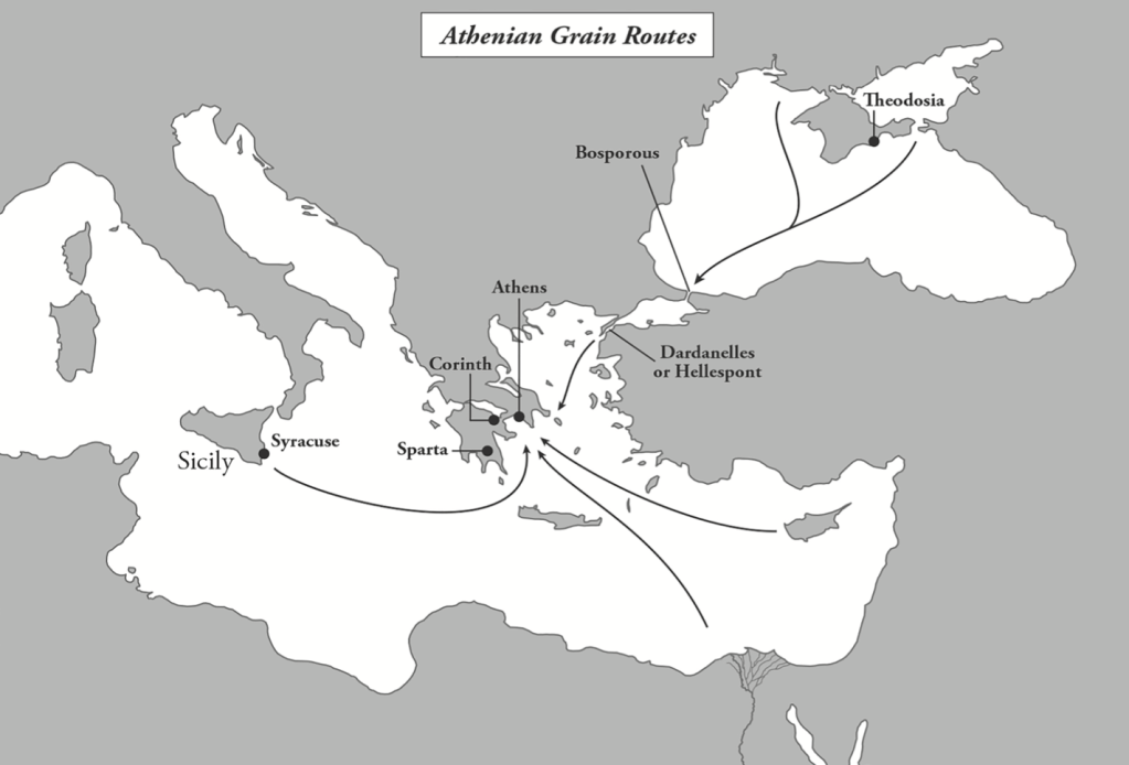 Athens for example thrived culturally and economically because of its need for long-haul food imports, Alexandria as the link to Indian Ocean goods imported to the Mediterranean.